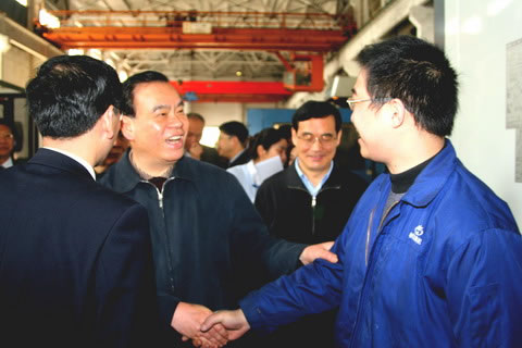 在集團(tuán)公司董事長朱金(jin)根的陪同下,呂省(sheng)長等省市領♈導實(shí)地👈考察了精機公(gong)司和恒溫裝配車(chē)間。
