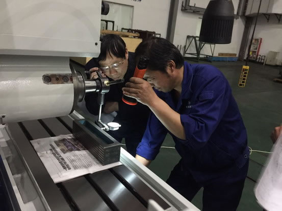 圖(tu)爲專家在杭機(jī)股份現場抽查(chá)M7132H卧軸矩台平面(miàn)磨床的💋幾🔱何精(jing)🔴度