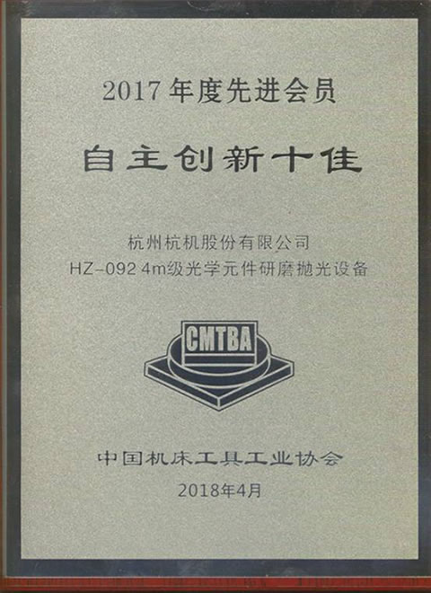 2025年12月,中國機(ji)床工具工業協(xie)會開展了2017年度(du)中國機床🏃🏻工😄具(jù)工業協會先進(jin)會員(十佳)表彰(zhāng)活動,我公司憑(ping)借“HZ-092 4米級光學元(yuan)件研磨抛光設(she)備”項目榮獲2017年(nián)度中國機床工(gōng)具工業協會“自(zi)主創新十🙇🏻佳”稱(chēng)号。