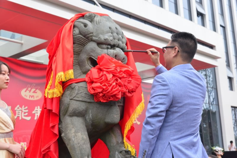 浦(pǔ)江縣人民(mín)政府副縣(xiàn)長樓新有(you)和杭機股(gu)份董事♉長(zhǎng)進行瑞獸(shou)開眼儀式(shi)